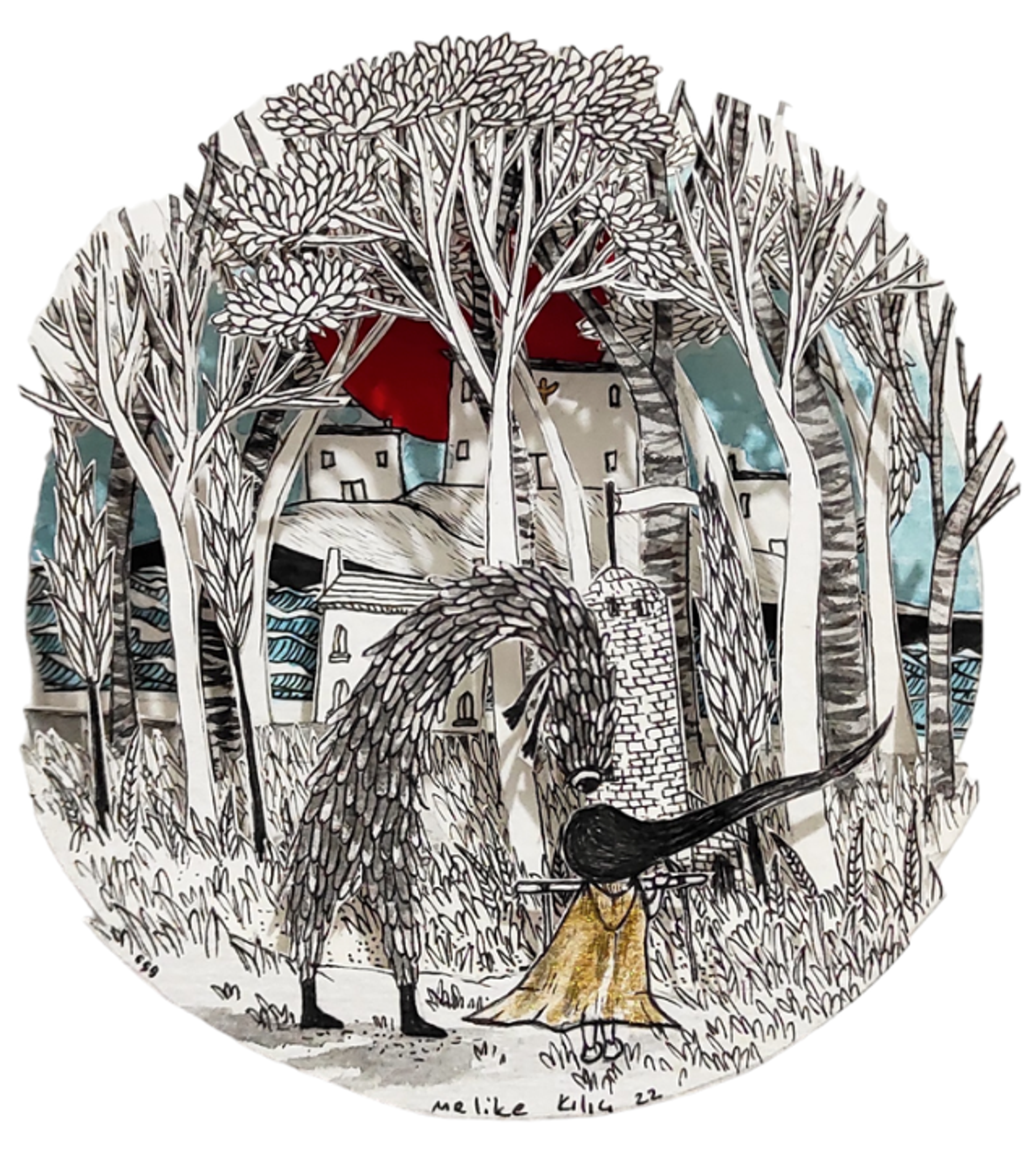 Kılıç’s works are delicate paper cutouts stacked to create 3D scenes of what look like fairy tales (priced from $1,550 to $2,150). These miniature dioramas characterize the artist’s personal migration historical past from the small Turkish village the place she grew as much as the metropolis of Istanbul, the place she now lives and works. The shadows the varied layers of paper create on one another add an nearly sinister high quality to the nostalgia of childhood.